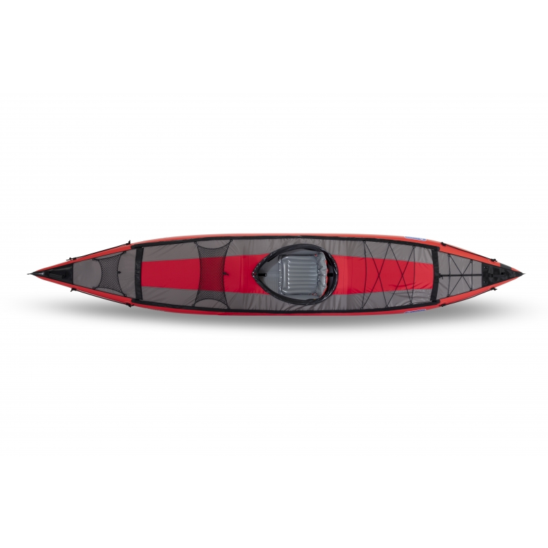 Un fond "dropstitch" progressif. Le fond en forme de V à l'avant augmente la hauteur du bateau sous la coque et lui confère une meilleure stabilité directionnelle et manœuvrabilité. La partie arrière plate du fond donne au kayak une stabilité inédite.